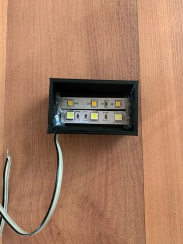 Ich habe 2 verschiedene LED Strips genommen (5cm Warmweiss / 5cm Kaltweiss mit je 3 LED´s), somit kann ich die Farben mischen und/oder separat schalten.