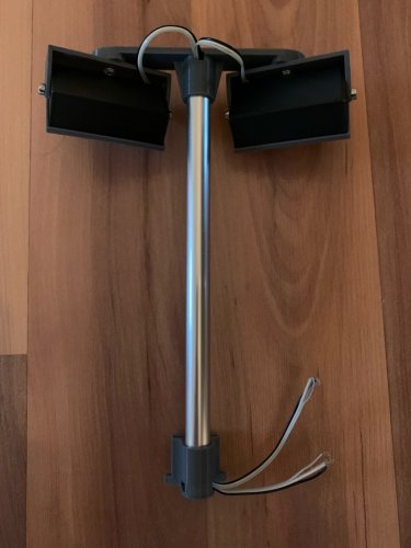 Meine erste Version hatte ich so gedacht, dass ich die Kabel an der Seite oder hinten rausführe und dann an die Stegleitung anlöte und diese nutze um die 12V zu den Lampen zu bekommen.