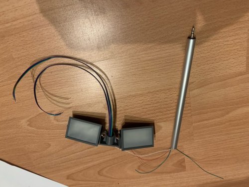Da sich aber mein Aufbau und Plan geändert hat, nutze ich nun 3,5mm Klinkenstecker Verlängerungen, die ich zerschnitten habe, die Buchse in der Bodenplatte montiert und den Stecker in das Rohr gedrückt und alle Adern verlötet habe.