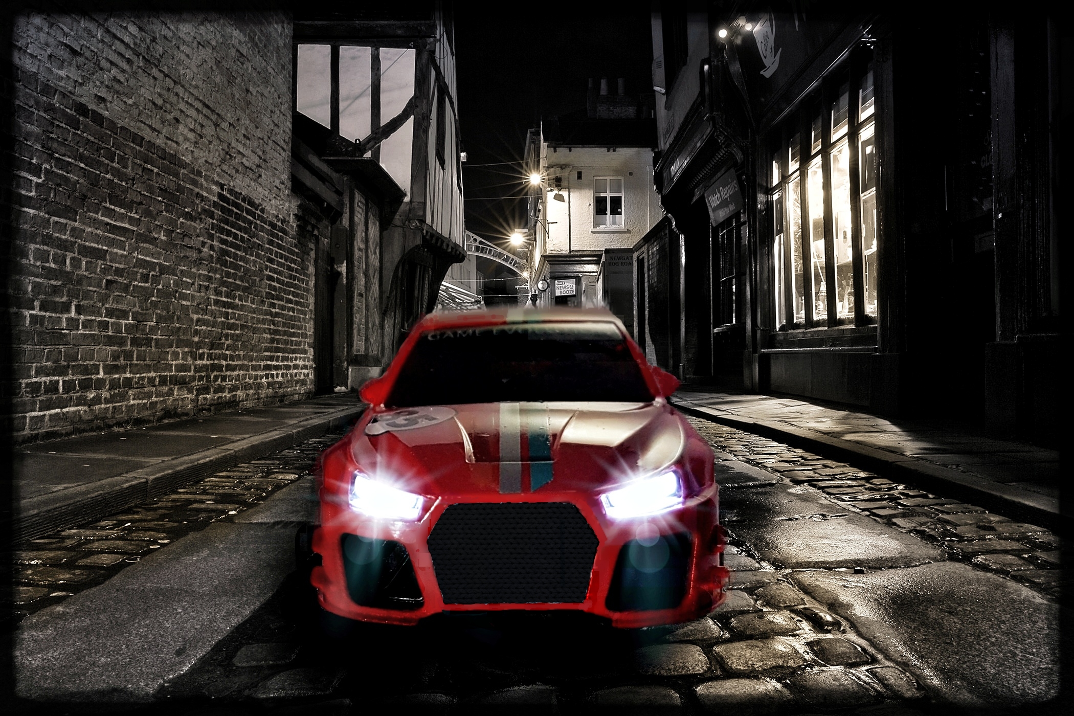 Hab mal meinen Flitzer als Grundlage genommen und mit Photo Studio den Kühlergrill modifiziert... Ich hoffe, er setzt nicht auf dem Pflaster auf